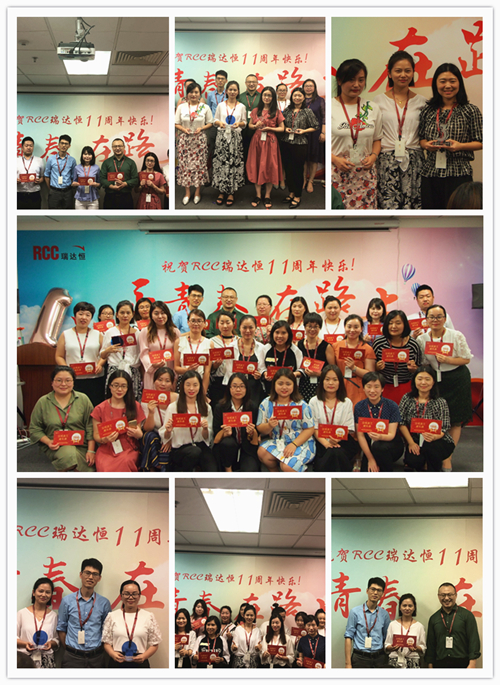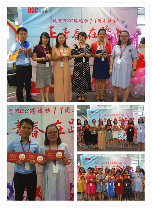 一段由RCC制作的十一周年慶視頻拉開了慶典活動的序幕。視頻中,敘寫了這一年來公司取得的驕人成績與開展的活動、PK戰(zhàn)中RCC員工們熱血的場面、客戶對RCC信息的評價片段、CEO在視頻中的致辭等內容,震撼著每一名RCC人。RCC在2017——2018年所取得的諸多創(chuàng)新和進步、輝煌的成就和永不止步的發(fā)展態(tài)度,讓在場的每一名員工都倍感光榮和自豪。一個個輕松活潑的環(huán)節(jié)讓整個活動現場其樂融融,充分展現了RCC大家庭的團結與溫暖,把氣氛推向了高潮。公司領導還為眾多在RCC工作三年或以上的員工頒發(fā)了“忠誠員工特殊獎”,本次的頒獎把原先贈予金器的形式改為發(fā)放面額1000元到4000元的“成長券”形式,專門用于購買圖書、線上課程、健身卡,幫助老員工提升職場專業(yè)技能和能力、鼓勵他們積極鍛煉,保持健康的體魄。新的獎品形式不僅代表著公司感謝忠誠員工與公司共成長的情誼,還表明公司對員工全面發(fā)展的高度重視,公司也將一如既往地為更多有能力、有思想的員工提供更為廣闊的發(fā)展空間。最后,在團結與溫暖氣氛中,在全體RCC員工對公司的祝福里,公司十一周年慶典活動落下帷幕。